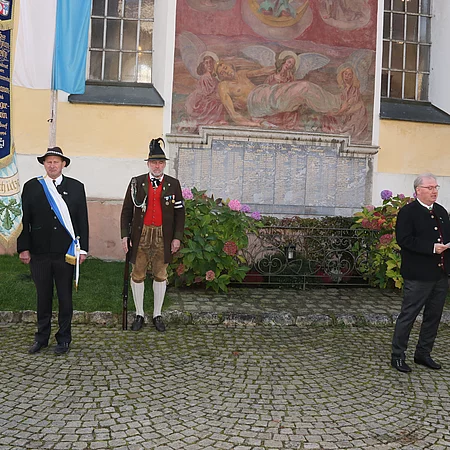 Vorstand Rasinger zeigte sich erfreut über die rege Beteiligung, darunter Ehrenvorstand Franz Leidl, Ehrenbürger und Altbürgermeister Hans-Jürgen Tremmel, sowie die Ehrenmitglieder Sepp Leitner jun., Peter Poll, Vitus Krapf, Horst Arimont und Hans Fritz. Er dankte der Ehrenwache der Gebirgsschützenkompanie für ihren Dienst am Ehrenmal sowie den Verantwortlichen an der Böllerkanone für ihre Unterstützung am Jahrtag und bei den Beerdigungen im vergangenen Jahr. Dankbarer Applaus galt auch der Beerdigungsmusik unter der Leitung von Fritz Vornberger und Martin Fritz, deren Aufgabe sich, wie Rasinger anmerkte, durch gesellschaftliche Veränderungen zunehmend erschwert, aber weiterhin prägend für Beerdigungsfeiern ist.